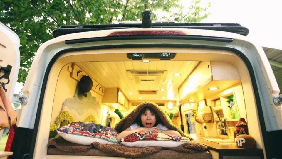 2022年,黄雅莉花了12万元,买了一辆上汽大通的二手房车。 内部空间只有5平方米,比很多家庭的厕所还小。 但她硬是把这5平米改造成了“三室一厅”。 床可以升降,收起后就是工作区。 灶台能折叠,打开就是厨房。 玩具藏在暗格里,车顶装了太阳能板,小冰箱和洗衣机塞在各个角落。 她亲手做了北斗七星形状的顶灯,晚上躺在车里就能看“星空”。